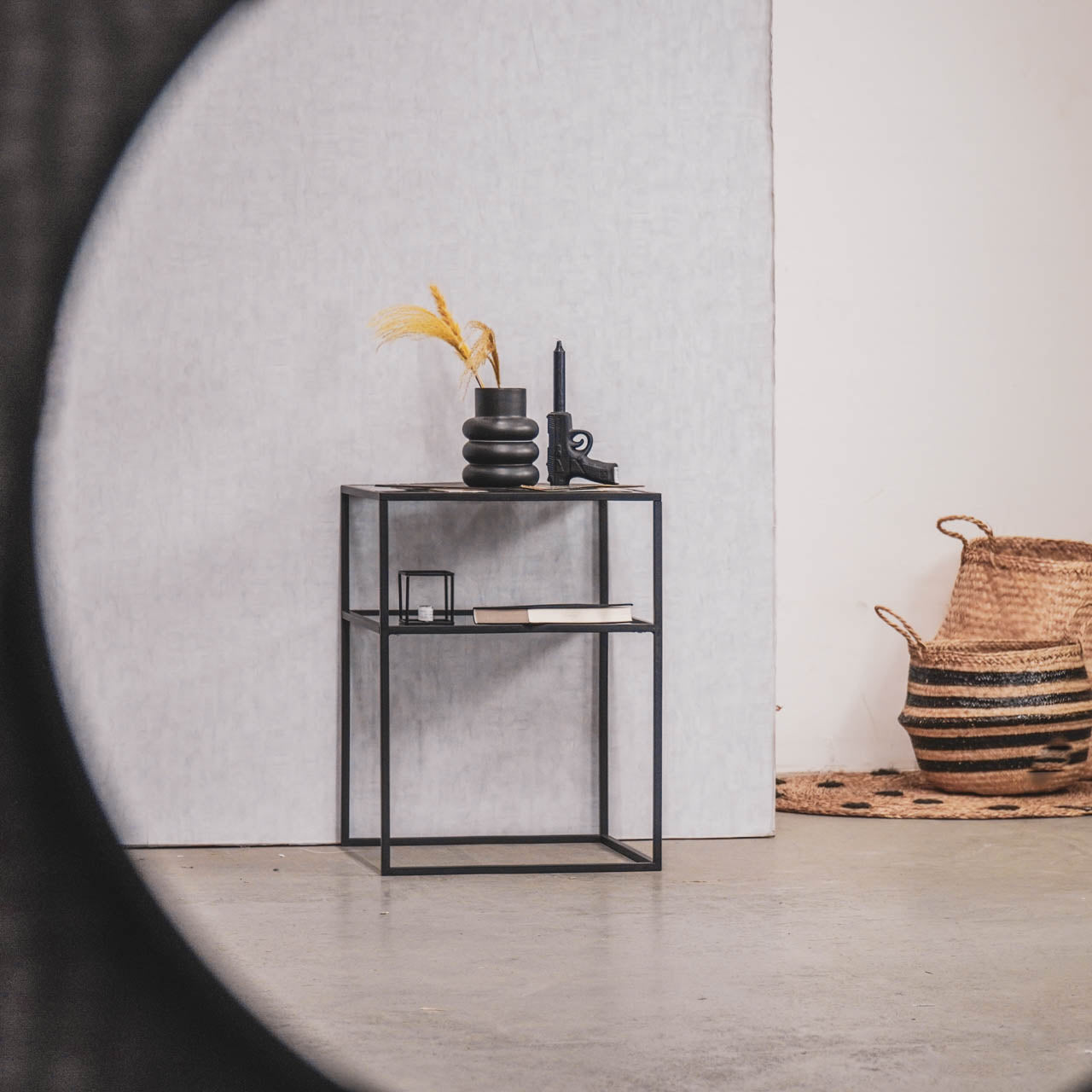 METALLIC STIJL – De Housevitamin tafels zijn ideaal om te mixen en matchen. Deze zwarte metalen bijzettafel van 45x45x60 cm is een slimme keuze.