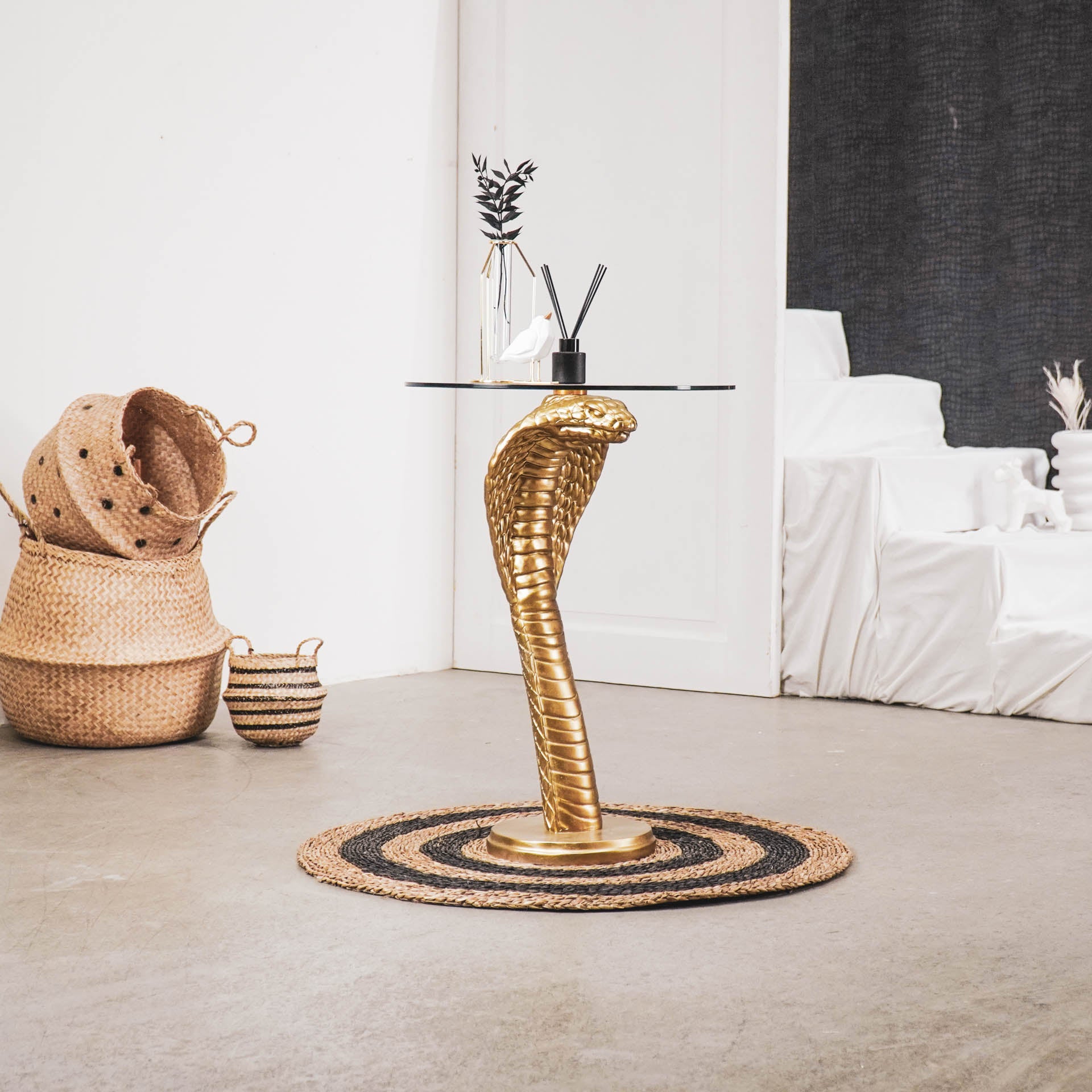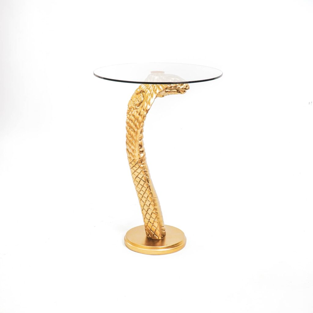 “Snakepit – Laat hem je drankjes dragen. Gemaakt van polyresin, 70x50cm. Ideaal als bijzettafel of pronktafel. Kleur: Goud.”