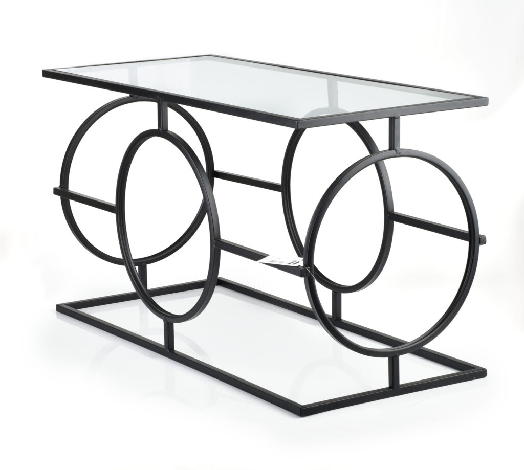 Elegante metalen tafel van Mondex CEDRIC-serie. Ideaal voor industriële en moderne interieurs. Afmetingen: Lengte: 80,00 Breedte: 35,50 Hoogte: 45,00.