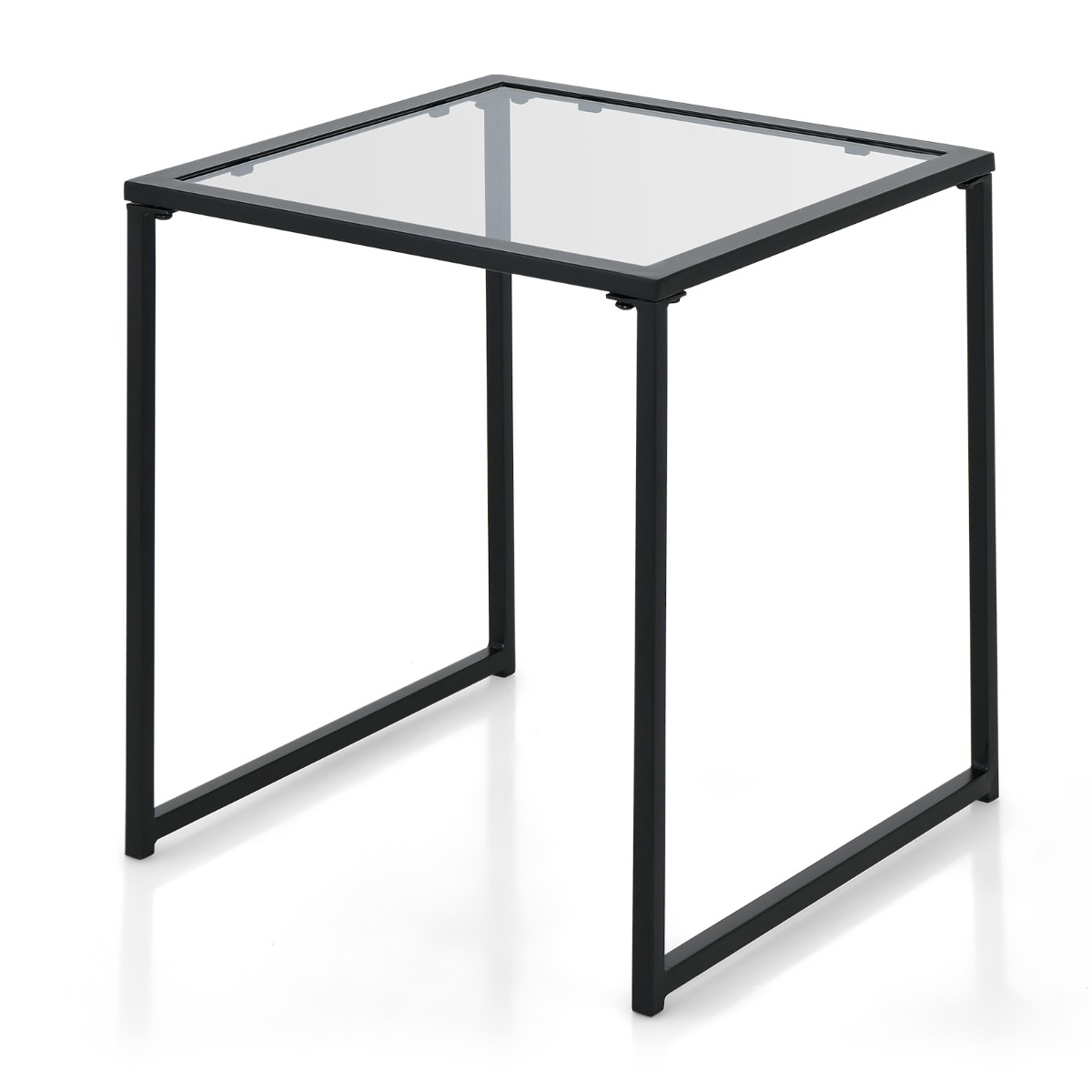 De vierkante bijzettafel voldoet goed aan je opbergbehoeften en zal een perfect stuk in je huis zijn ! Het brede tafelblad biedt voldoende opbergruimte en ruimte voor dagelijkse voorwerpen. Bovendien betekent het solide tafelblad van gehard glas een betere duurzaamheid, een langere levensduur en een hogere stabiliteit. Stabiele metalen poten zijn niet gemakkelijk te breken of te vervormen. Moderne stijl en elegante uitstraling maken deze tafel tot een charmante aanvulling voor woonkamer, veranda, dek of tuin. Attributen: Vierkant tafelblad van gehard glas: De outdoor-bijzettafel beschikt over een robuust tafelblad van gehard glas, dat perfecte prestaties toont wat betreft hoge sterkte en krasbestendigheid. De praktische bijzettafel kan voorwerpen die je nodig hebt binnen handbereik houden, zoals dranken, snacks, boeken en mokken. Stabiele structuur voor een lange levensduur: Door een gepoedercoat metalen frame is de terrassontafel robuust en duurzaam voor langdurig gebruik. De versterkte schroefverbinding zorgt voor een zeer betrouwbare structuur. Antislip voetkussens voorkomen ook krassen op de vloer. Compact ruimtebesparend design: Met de totale afmetingen van 43 x 43 x 45 cm (l x b x h) past de compacte bistrotafel perfect in kleine ruimtes. De platte basis zorgt voor een nauwe pasvorm aan de randen van de bank of naast de stoel en voldoet aan verschillende doeleinden, wat veel comfort met zich meebrengt. Veelzijdige bijzettafel: De strakke lijnen en het eenvoudige design geven deze bijzettafel een vleugje elegante aantrekkingskracht en maken hem tot een esthetisch aantrekkelijk stuk voor binnen en buiten. De vierkante bijzettafel kan met je favoriete stoel worden gecombineerd en is geschikt voor woonkamer, veranda, dek of tuin. Eenvoudige montage en onderhoud: Alle hardware en onderdelen zijn genummerd en de montagestappen zijn in de handleiding weergegeven. Er is geen tijdrovend onderhoud nodig in normale tijden. Je kunt het tafelblad eenvoudig met een vochtige doek afvegen. Kenmerken: Stevig gehard glas is duurzaam en krasbestendig Het vierkante glazen tafelblad is ontworpen voor het opbergen van je veelgebruikte voorwerpen Gepoedercoat metalen frame wiebelt of barst niet gemakkelijk Antislip voetkussens voorkomen dat de vloer beschadigd wordt Te gebruiken op veranda, terras, balkon, zwembad of tuin Het gladde tafelblad is gemakkelijk te reinigen en te onderhouden Eenvoudig te monteren onder instructies Opmerking: laat de bijzettafel niet in de regen staan