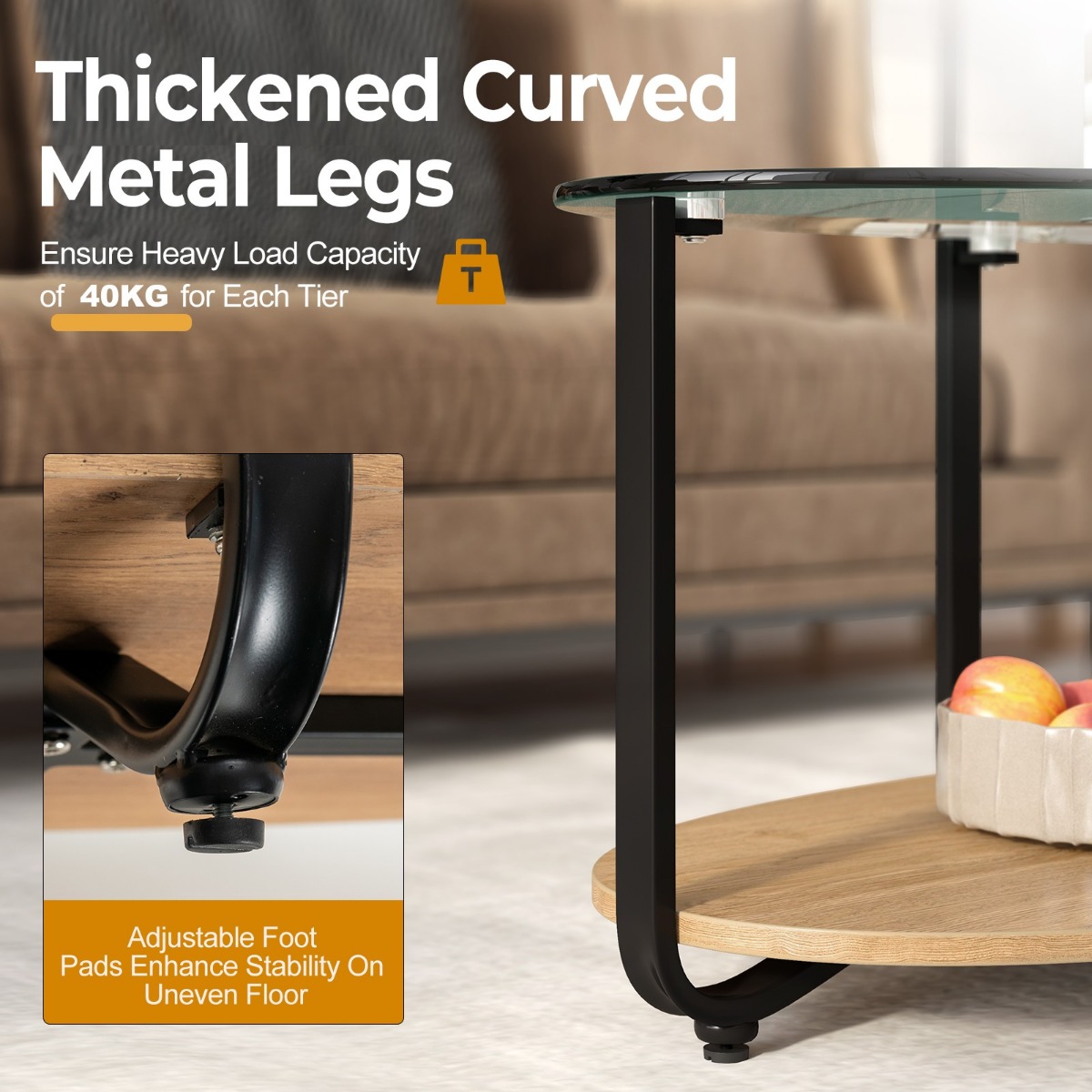 Onze salontafel is een perfecte aanvulling op je huis!Deze tafel met 2 niveaus biedt voldoende opbergruimte voor al uw persoonlijke bezittingen. Het tafelblad is gemaakt van transparant gehard glas, wat goed is voor het tentoonstellen van decoraties en het toevoegen van visuele charme aan uw huis. De onderste laag is gemaakt van hoogwaardig hout, is stevig en duurzaam en biedt plaats aan diverse spullen en houdt je woonruimte netjes. Dankzij de unieke verstelbare voetkussens staat onze tafel stabiel op oneffen vloeren. De randen van de gehele tafel zijn glad en rond, wat gebruiksvriendelijk is en geen onbedoelde krassen veroorzaakt. Deze salontafel past met zijn moderne uitstraling goed bij diverse decoratiestijlen. Bovendien is deze salontafel gemakkelijk schoon te maken, wat langdurig en comfortabel onderhoud belooft. Attributen: [ 2-traps design met veel opbergruimte]: Deze salontafel beschikt over 2 grote etages en biedt voldoende ruimte voor het presenteren en bewaren van voorwerpen en decoratieve artikelen. En het open houten rek aan de onderkant maakt het mogelijk om verschillende dingen netjes en gemakkelijk toegankelijk op te bergen. [ Verbeterd metalen frame voor duurzame duurzaamheid]: Dankzij de robuuste ijzeren constructie garandeert deze salontafel hoge stabiliteit en langdurig gebruik. Bovendien zorgen de verstelbare voetkussens aan de onderkant ervoor dat de tafel ook op oneffen vloeren stabiel blijft. En het tafelblad van gehard glas en het onderste slijtvaste houten rek kunnen apart tot 40 kg dragen. [ Gehumaniseerd design vergemakkelijkt het dagelijks gebruik]: In vergelijking met andere merken is deze accentbijzettafel met gehumaniseerde hoogte een ideale aanvulling voor je ontspanningsruimte. Of je nu op de grond zit of op de bank ligt, deze salontafel voldoet aan je behoeften tijdens het lezen, drinken en spelen. Bovendien voorkomen de fijne afwerking en de gladde rand dat je handen bekrast worden. [ Veel gebruikt bij verschillende gelegenheden]: Door zijn eenvoudige en toch moderne stijl past deze salontafel perfect bij verschillende interieurstijlen, zoals kantoor, thuis en in de vrije tijd. Hij is bijvoorbeeld uitstekend geschikt als centrum voor ontmoetingen met familie en vrienden. [ Snelle montage en eenvoudig onderhoud]: Omdat alle onderdelen en een uitgebreide handleiding in het pakket zijn inbegrepen, is de montage van de salontafel uiterst eenvoudig, zonder veel tijd en energie te verbruiken. Bovendien kan de tafel gemakkelijk met een vochtige handdoek worden gereinigd, wat je helpt om je dagelijkse huishoudelijke werkzaamheden te verminderen. Kenmerken: Het tafelblad van gehard glas straalt elegante charme uit De salontafel met 2 niveaus biedt voldoende opbergruimte Verstelbare voetkussens zorgen voor stabiliteit op oneffen ondergrond Gladde randen beschermen u tegen onbedoelde krassen De verbeterde metalen constructie zorgt voor een stevige grip Het moderne exterieur past perfect bij verschillende interieurstijlen Robuuste houten vloerplank voor lange duurzaamheid Snelle installatie en eenvoudige reiniging besparen elke dag tijd en energie