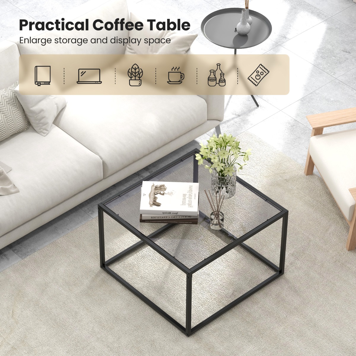 De vierkante salontafel is gemaakt met een dik, explosiebestendig blad van gehard glas dat bestand is tegen hoge temperaturen (tot 150 ℃) en een metalen frame, wat zorgt voor een stevige structuur. Het waterbestendige oppervlak vereist weinig onderhoud. Voor nog meer gemak is hij voorzien van verstelbare voetsteunen om aan verschillende behoeften te voldoen. Met een chique zwart frame met roestbestendige poedercoating en een geraffineerd grijs/transparant blad van gehard glas is het een charmante aanwinst voor de woonkamer, slaapkamer of kantoor. Attributen: 【Bovenblad van gehard glas van hoge kwaliteit】 De salontafel is gemaakt van dik gehard glas, dat het voordeel heeft dat het hittebestendig en explosiebestendig is. Bovendien is het blad voorzien van haringen om het te bevestigen en het elegante oppervlak maakt het gemakkelijk schoon te maken. 【Robuuste metalen structuur】 Naast het dikke glazen blad wordt de salontafel ondersteund door metalen buizen voor een stevige, duurzame constructie. Bovendien verbeteren de verstelbare voetsteunen de algehele stabiliteit en beschermen ze de vloer tegen beschadiging. 【Decent formaat vierkante tafel】 De praktische salontafel heeft een vierkant blad van 70 cm voor meer opberg- en displayruimte. Bovendien is de glazen tafel met zijn afmetingen van 70 x 70 x 45 cm (L x B x H) geschikt voor elke kleine of grote ruimte. 【Stijl ontmoet functie】 De salontafel heeft een mat zwart metalen frame en een grijs/transparant glazen blad, wat esthetische schoonheid toevoegt aan je huis. Bovendien is de minimalistische salontafel een charmante toevoeging aan je woonkamer, slaapkamer of studeerkamer. 【Snelle en intuïtieve montage】 Deze glazen salontafel kan moeiteloos worden geïnstalleerd volgens de instructies. Alle materialen en onderdelen zijn genummerd en de montagestappen staan in de gedetailleerde instructies. Kenmerken: Gehard glazen blad is hittebestendig en duurzaam Steundeuvels onder het blad zorgen voor een stevige grip Robuust, zeer sterk metalen frame Voorzien van verstelbare voetsteunen voor extra stabiliteit Vierkant tafelblad houdt je woonkamer netjes Minimalistisch ontwerp past goed bij je interieur Te gebruiken als salontafel in huis of op kantoor Glad blad is gemakkelijk schoon te maken Snel en eenvoudig te installeren