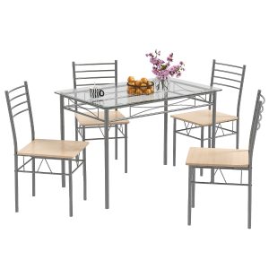 Costway 5-Delige Eettafelset Eettafel met Glasplaat Eetgroep met Gevoerde Stoel Keukentafel met 4 Stoelen Zitgroep voor Eetkamer Keuken