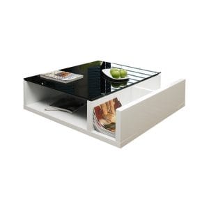 Glazen salontafel wit zwart 100×100 cm