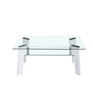 Glazen salontafel zilver roestvrij staal en glas (110x45x45cm)
