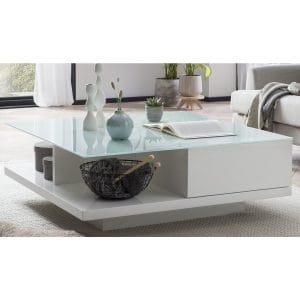 Glazen salontafel 100x100x36 cm wit
