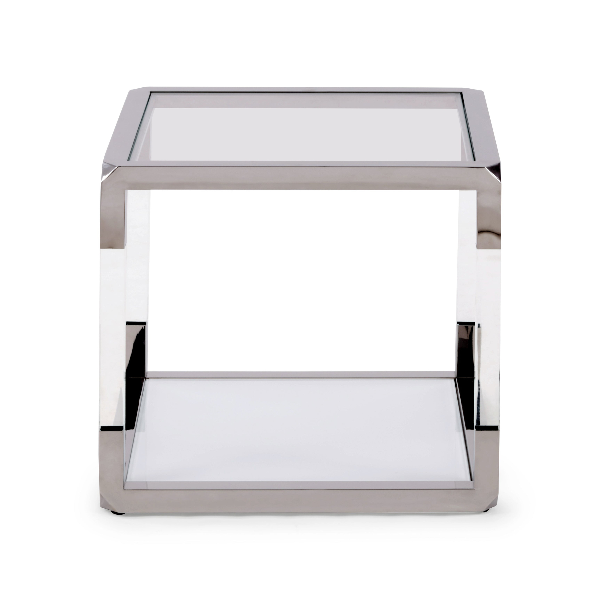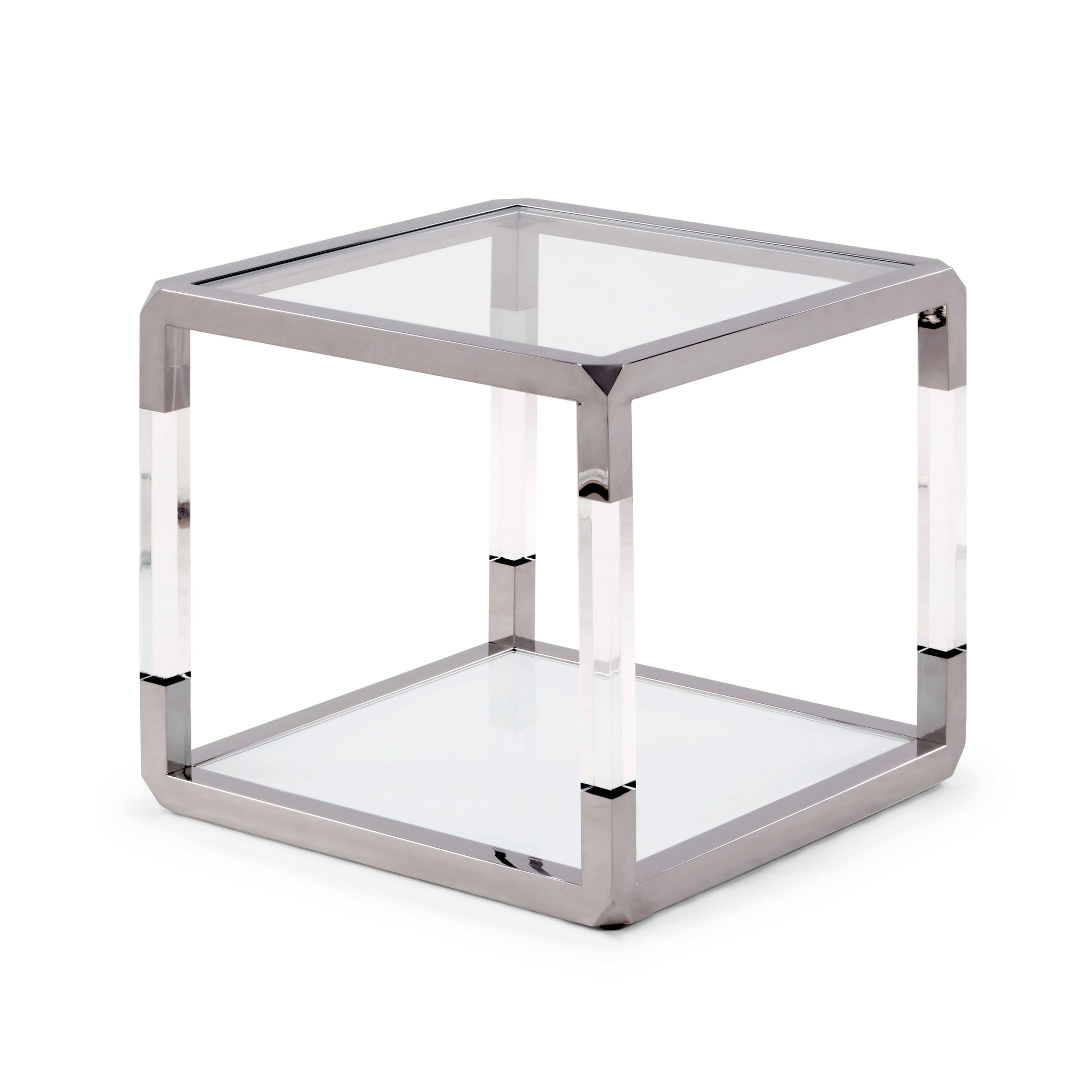 The Jasper collection boasts a modern design with ultra-clear glass, polished steel, and acrylic. Chic and stable, perfect for displaying. Dimensions: 51H x 56W x 56D. 22 kg. Made in China.