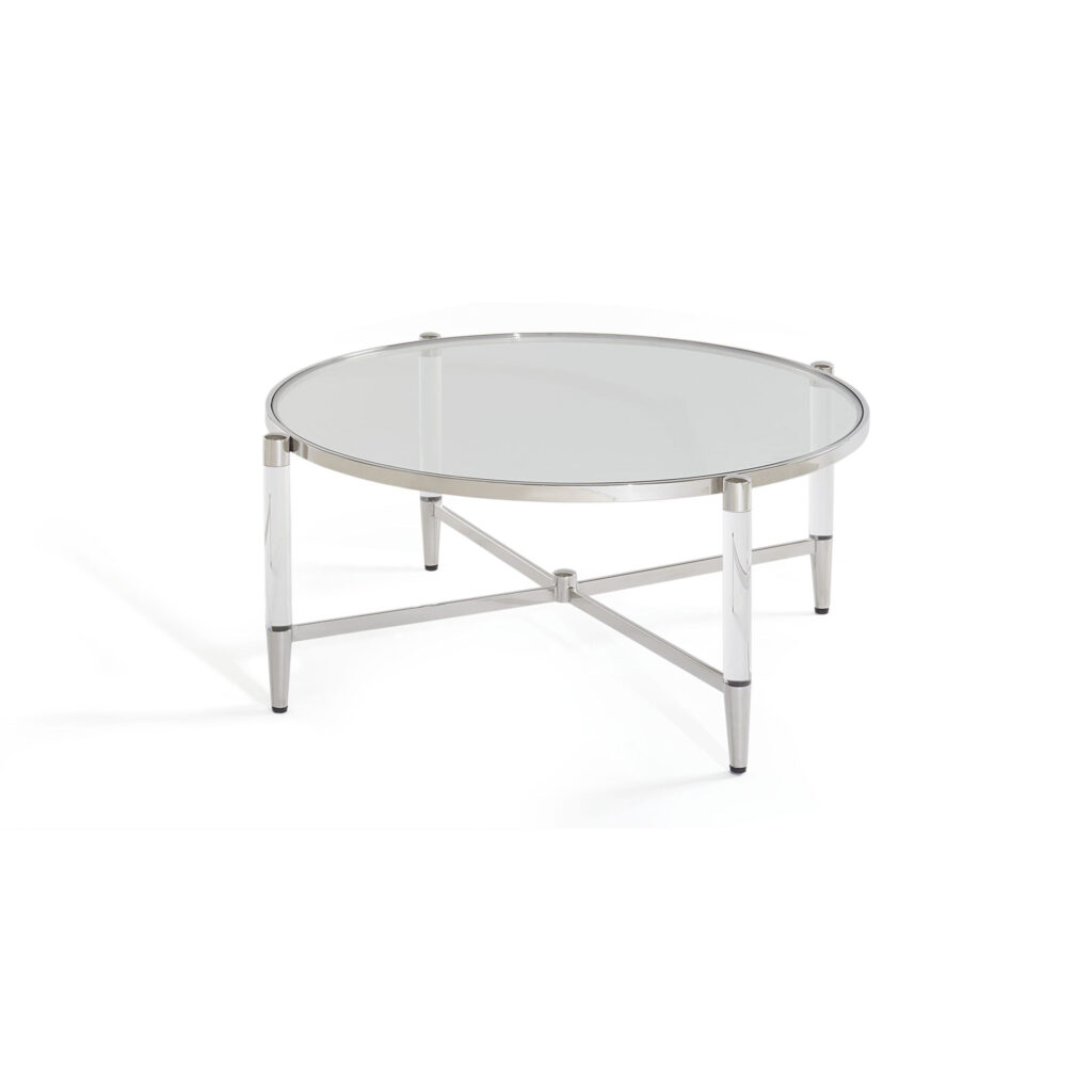 Koffietafel met glazen blad en stalen onderstel: “Marilyn”. Stijlvol en functioneel design voor elk interieur.